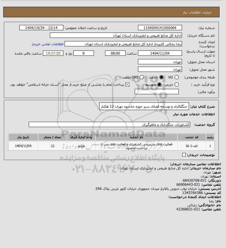 شرح کلی نیاز: جنگلکاری و توسعه فضای سبز حوزه جاجرود تهران 12 هکتار