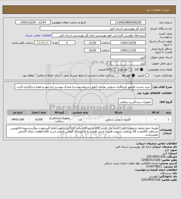 استعلام خرید چست الکترود غربالگری شنوایی نوزادان (طبق شرایط پیوست) مدارک پیوست باید مهر و امضا و بارگذاری گردد., استعلام خرید چست الکترود غربالگری شنوایی نوزادان (طبق شرایط پیوست) مدارک پیوست باید مهر و امضا و بارگذاری گردد.
