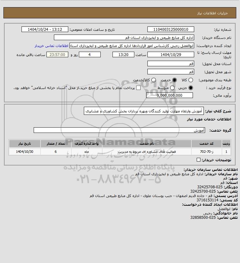 شرح کلی نیاز: آموزش وارتقاء مهارت تولید کنندگان وبهره برداران بخش کشاورزی و عشایری
