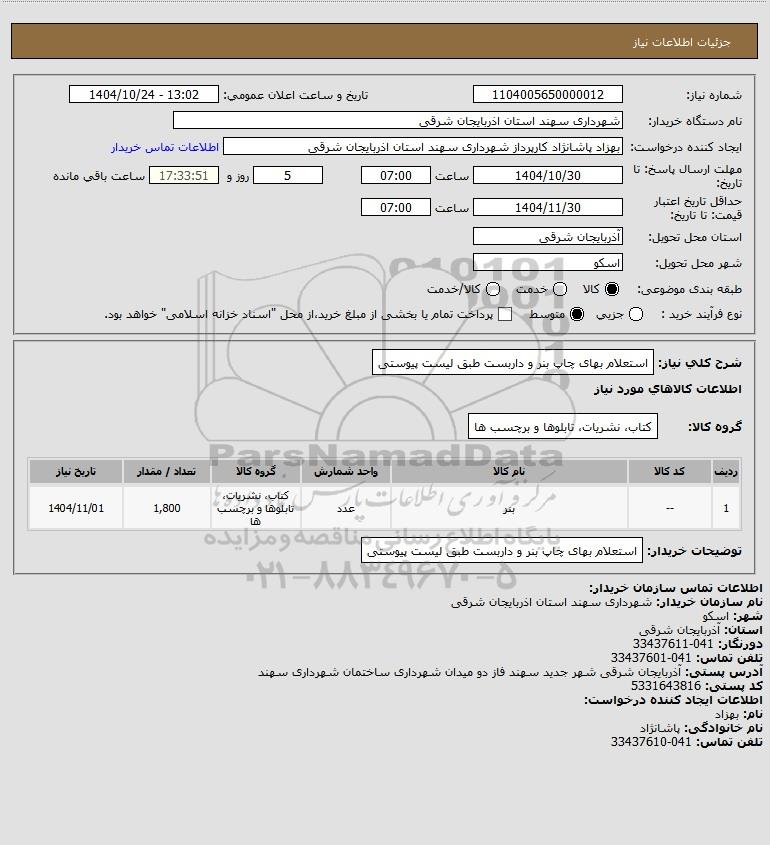 توضیحات خریدار:استعلام بهای چاپ بنر و داربست طبق لیست پیوستی