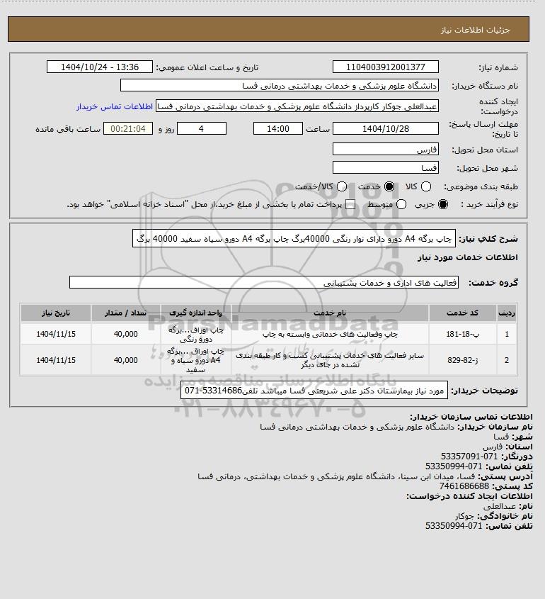 استعلام چاپ برگه A4 دورو دارای نوار رنگی 40000برگ چاپ برگه A4 دورو سیاه سفید 40000 برگ, استعلام چاپ برگه A4 دورو دارای نوار رنگی 40000برگ چاپ برگه A4 دورو سیاه سفید 40000 برگ