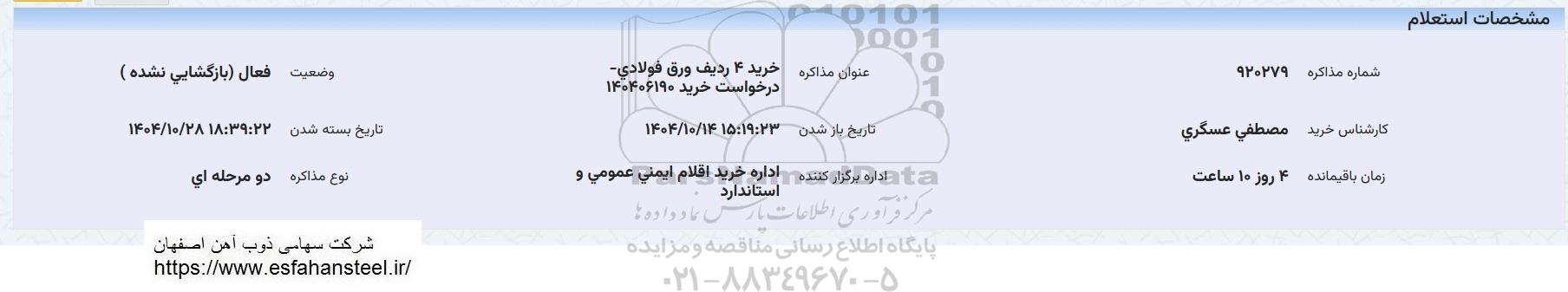 عنوان مذاکره : خرید 4 ردیف ورق فولادی - درخواست خرید 140406190