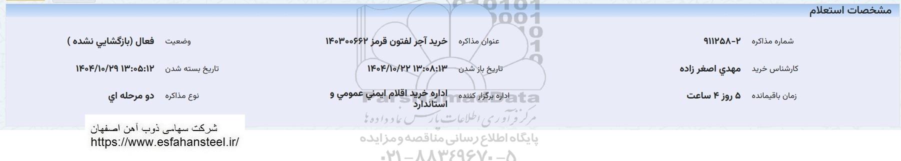 عنوان مذاکره : خرید آجر لفتون قرمز 140300662