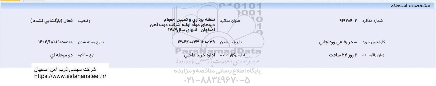 عنوان مذاکره : نقشه برداری و تعیین احجام دپوهای مواد اولیه شرکت ذوب آهن اصفهان - انتهای سال 1404