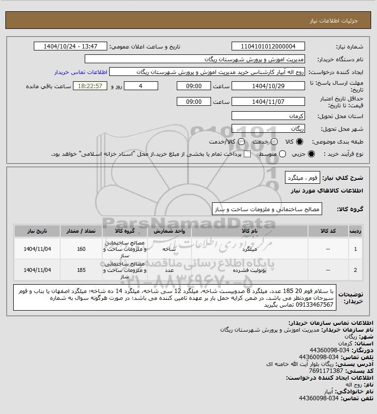 نام دستگاه خریدار:مدیریت اموزش و پرورش شهرستان ریگان