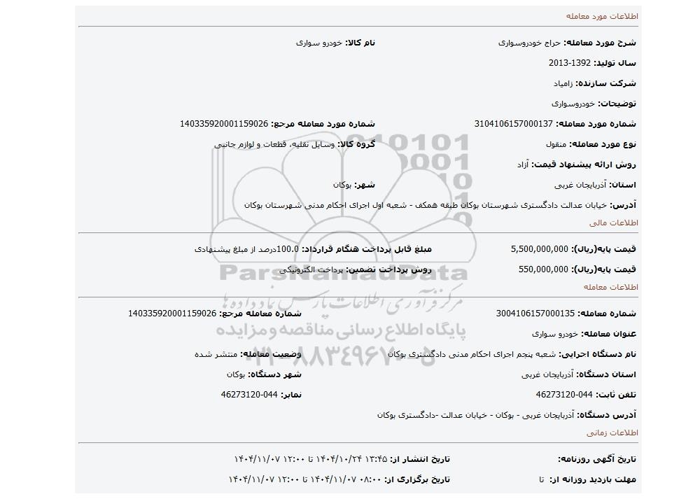 | شماره معامله: 3004106157000135 | شماره معامله مرجع: 140335920001159026 | |