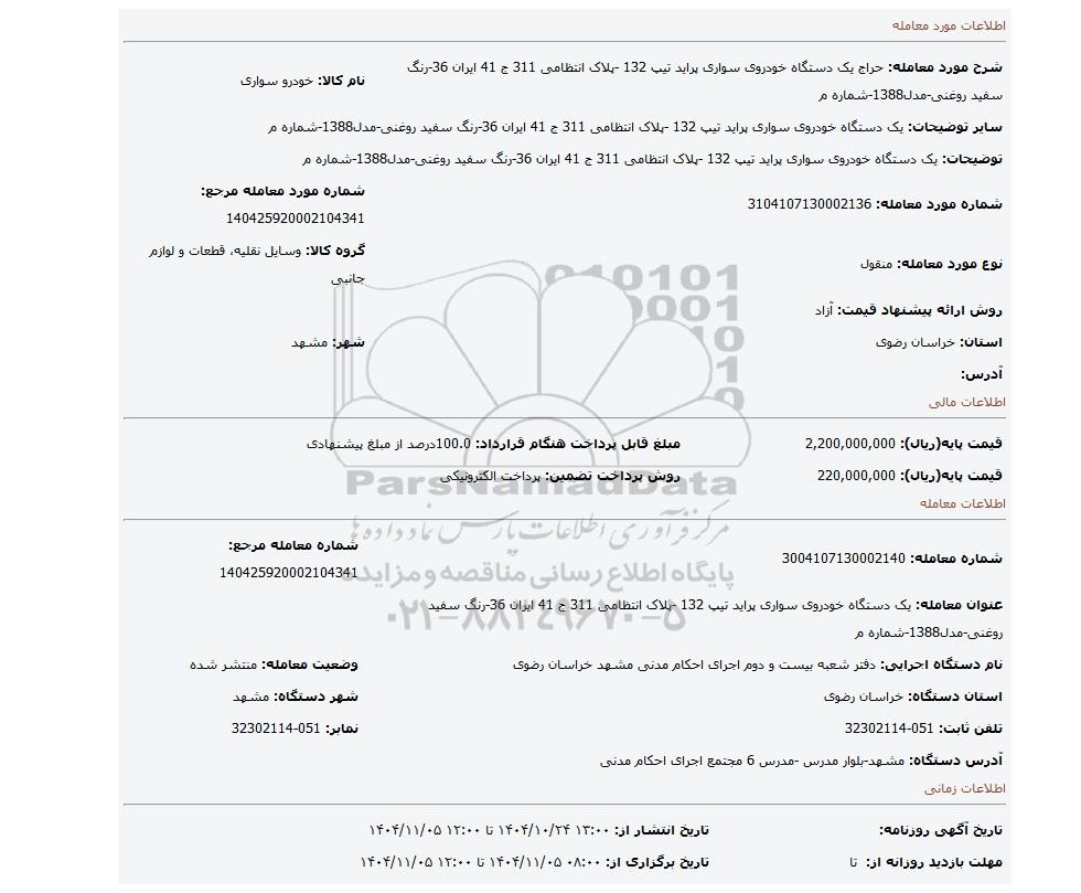 شماره مورد معامله: 3104107130002136شماره مورد معامله مرجع: 140425920002104341