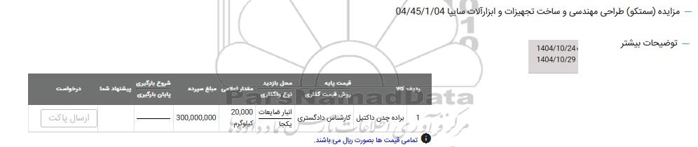 مزایده (سمتکو) طراحی مهندسی و ساخت تجهیزات و ابزارآلات سایپا 04/ 1/ 45/ 04