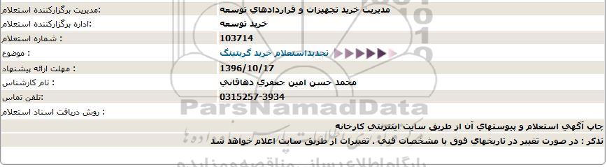 چاپ اگهی استعلام و پیوستهای آن از طریق سایت اینترنتی کارخانه