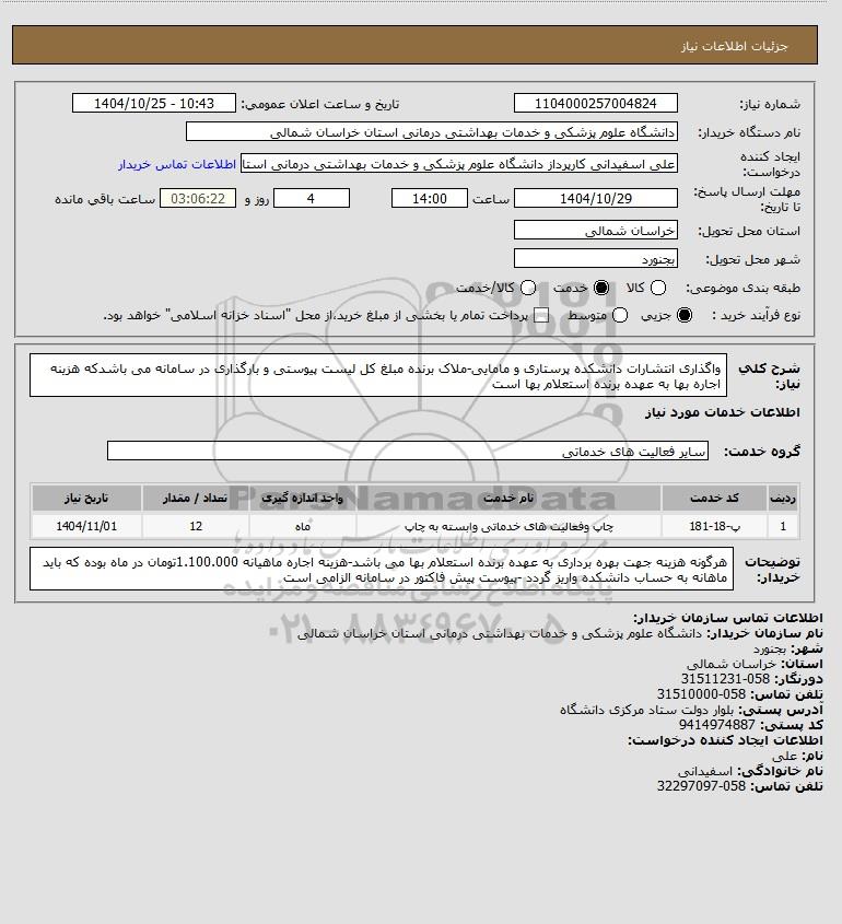 نام دستگاه خریدار:دانشگاه علوم پزشکی و خدمات بهداشتی درمانی استان خراسان شمالی