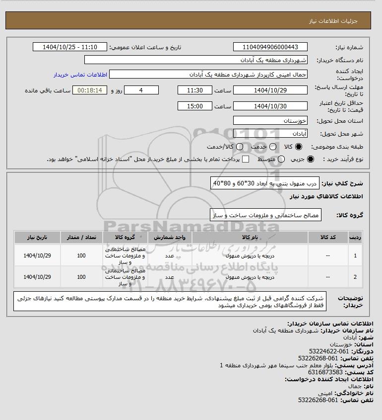 نام سازمان خریدار: شهرداری منطقه یک آبادان