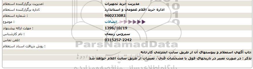 مهلت ارائه پیشنهاد : 96.10.19