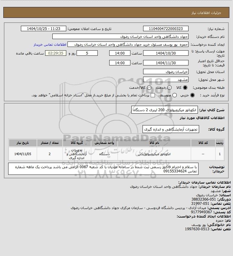 نام دستگاه خریدار:جهاد دانشگاهی واحد استان خراسان رضوی