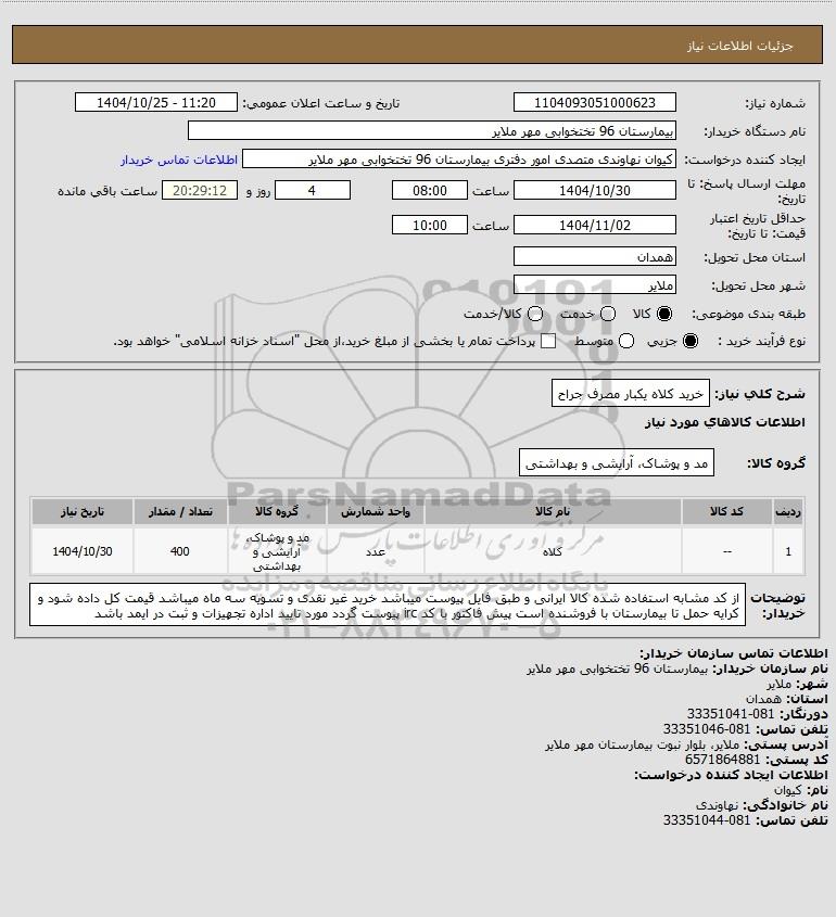 شرح کلی نیاز: خرید کلاه یکبار مصرف جراح