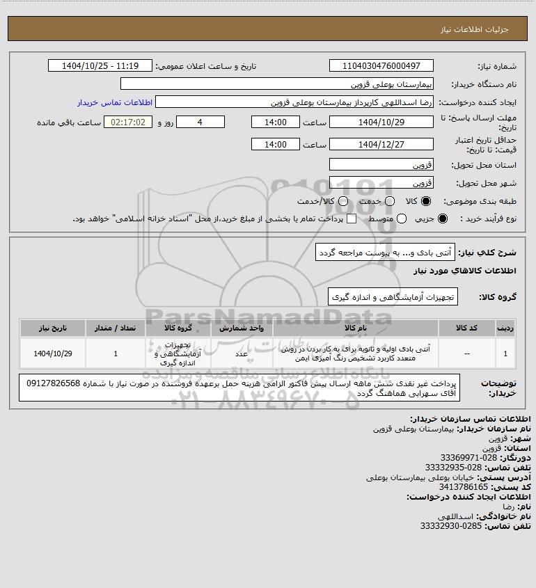 نام دستگاه خریدار:بیمارستان بوعلی قزوین