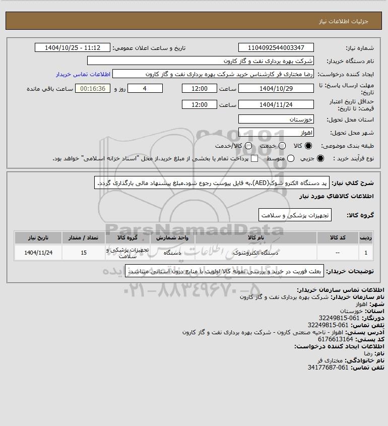نام دستگاه خریدار:شرکت بهره برداری نفت و گاز کارون