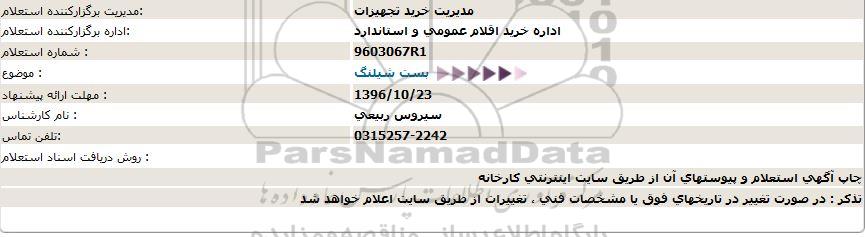 اداره برگزارکننده استعلام: اداره خرید اقلام عمومی و استاندارد