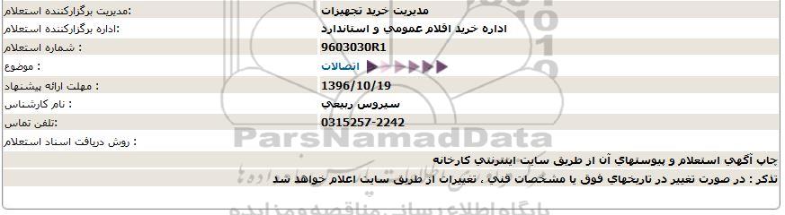 اداره برگزارکننده استعلام: اداره خرید عمومی و استاندارد