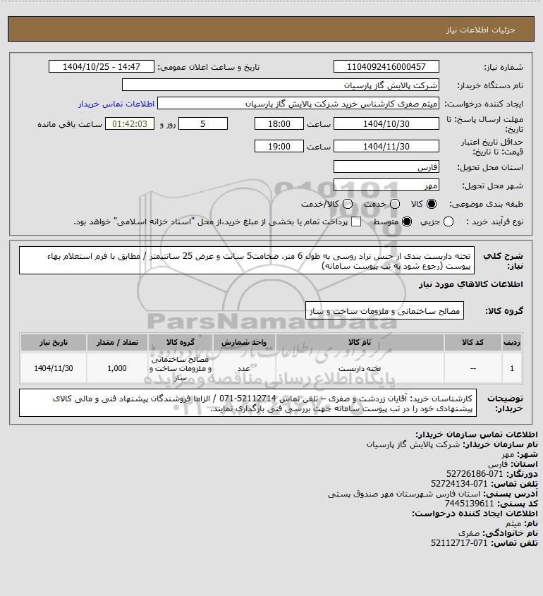 نام سازمان خریدار: شرکت پالایش گاز پارسیان