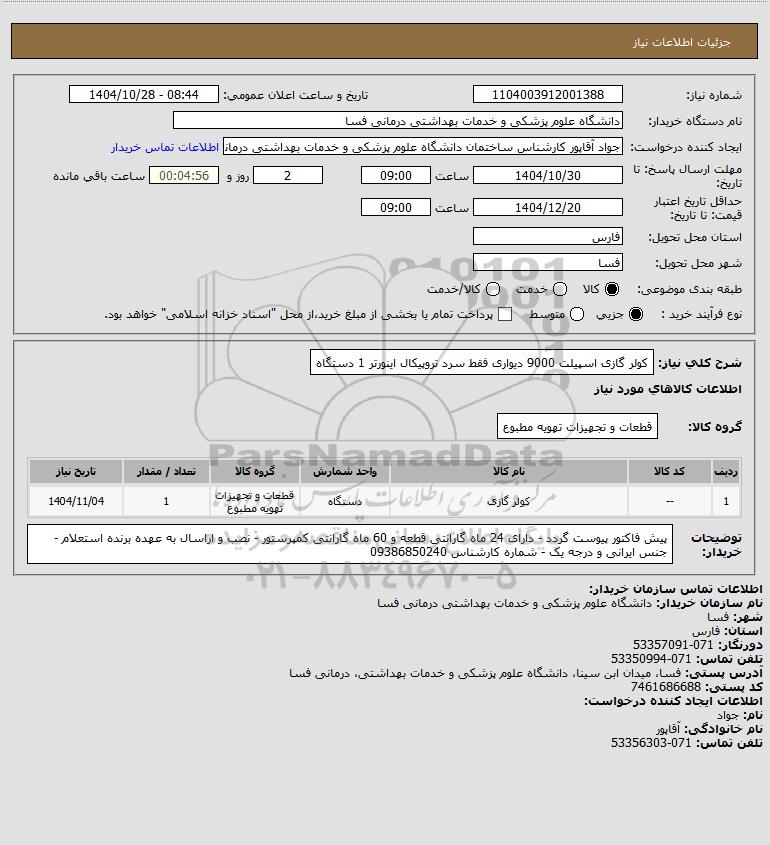 شرح کلی نیاز: کولر گازی اسپیلت 9000 دیواری فقط سرد تروپیکال اینورتر 1 دستگاه
