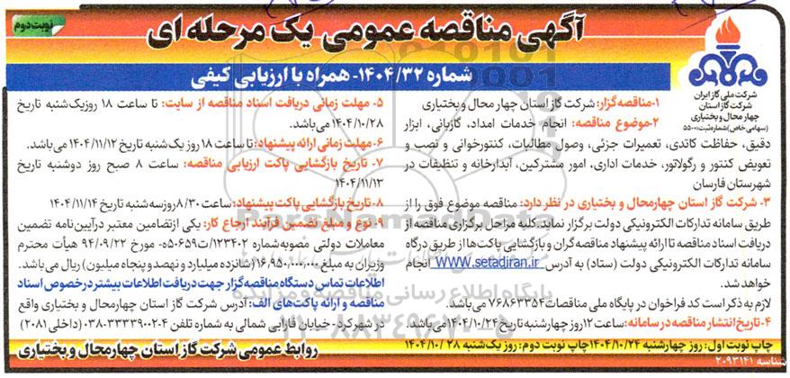 آگهی مناقصه عمومی یک مرحله ای شماره 1404/32 همراه با ارزیابی کیفی نویت دوم