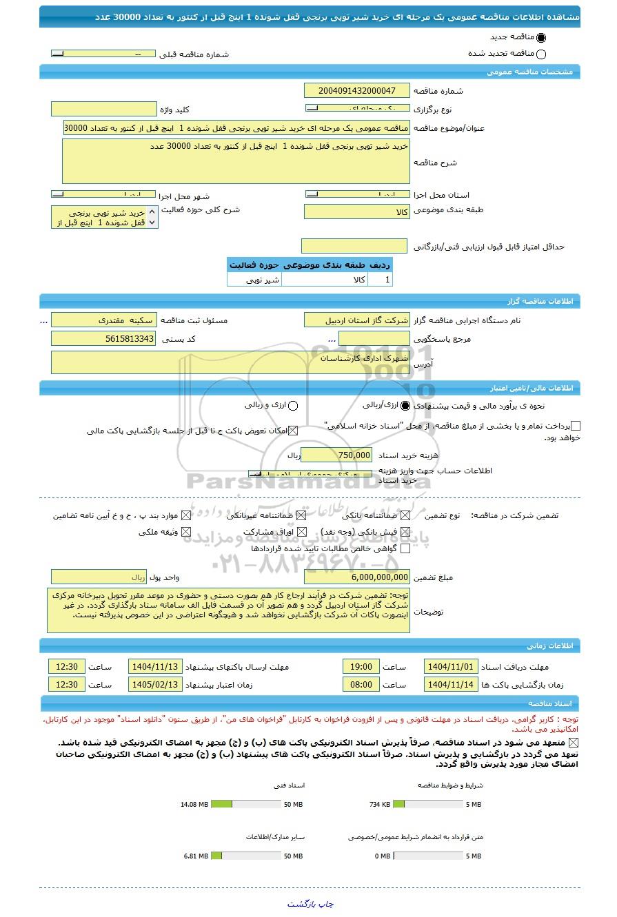 | شماره مناقصه | 2004091432000047 | ||||||||