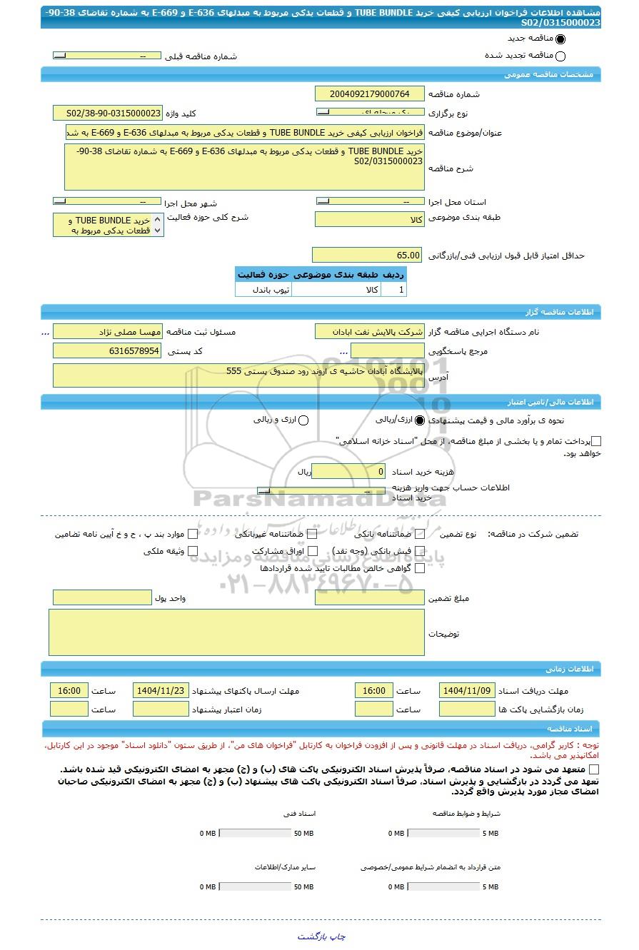 | شماره مناقصه | 2004092179000764 | ||||||||