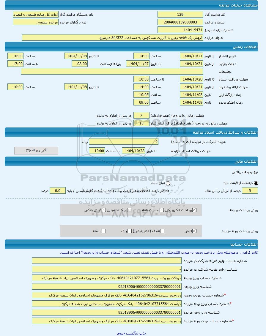 شماره مال2104000139000002نوع برگزاری مزایده مزایده عمومی