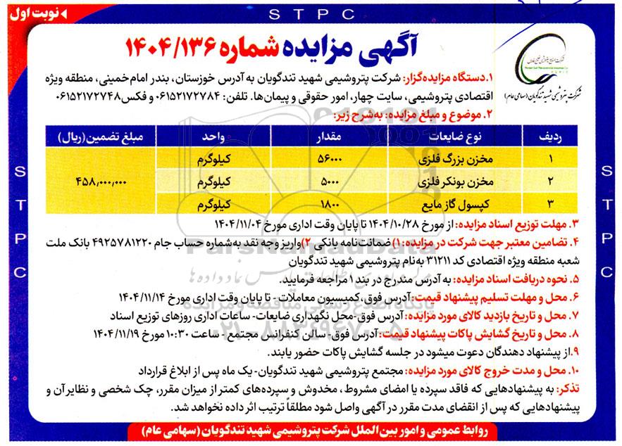 آگهی مزایده شماره 1404/136 ؟ نوبت اول