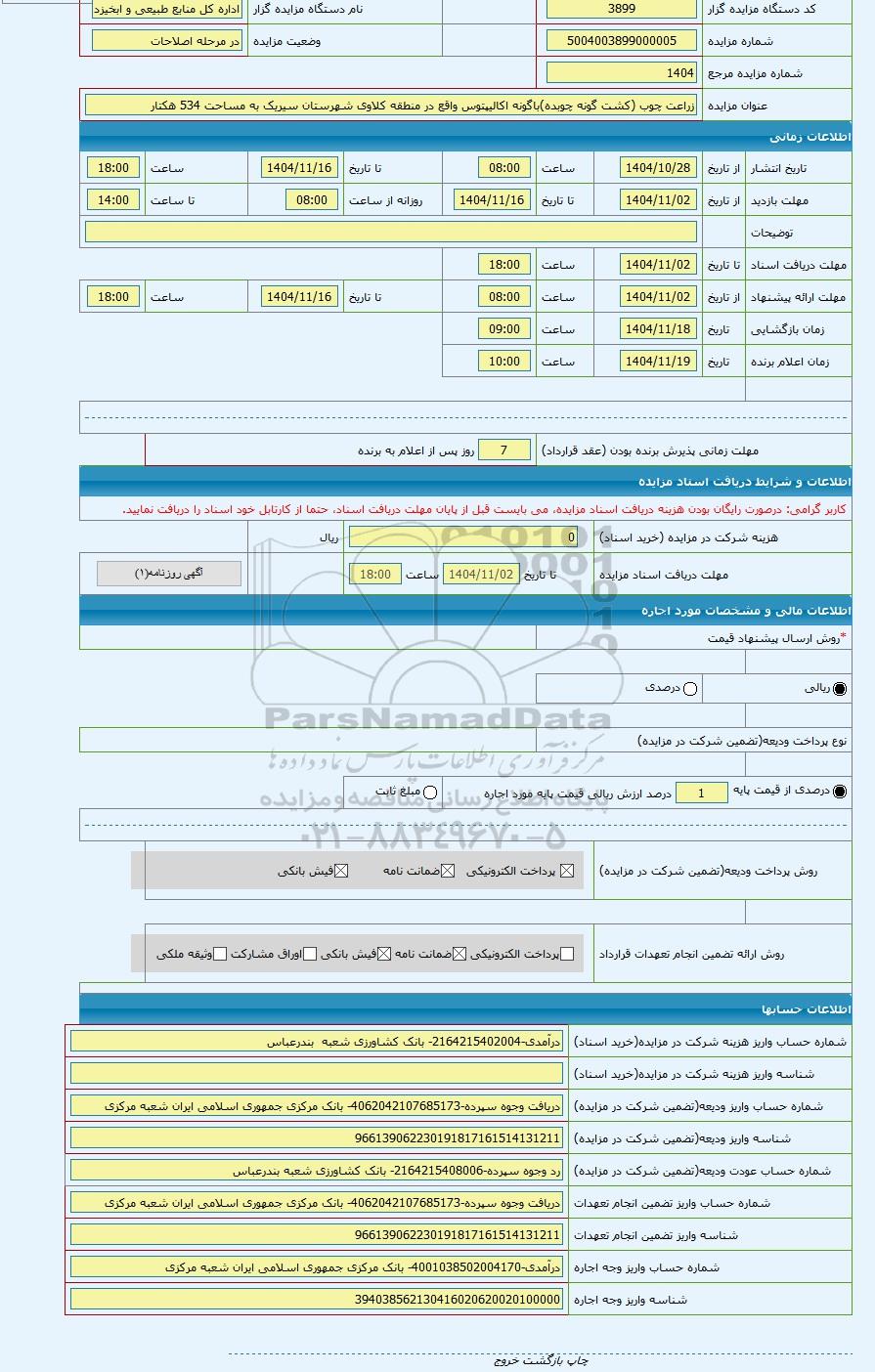 | شماره حساب عودت وجه مزایده | 394038562130416020620020100000 |
