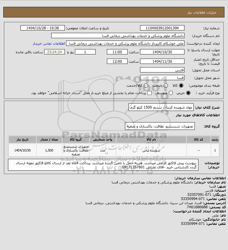 شرح کلی نیاز: مواد شوینده کربنات سدیم 1500 کیلو گرم