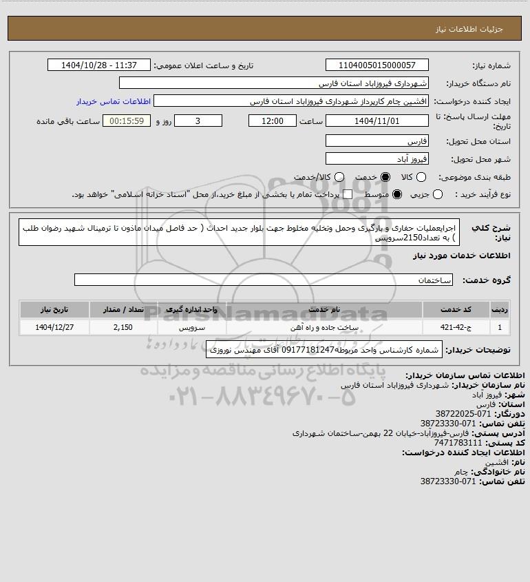 نام دستگاه خریدار:شهرداری فیروزاباد استان فارس