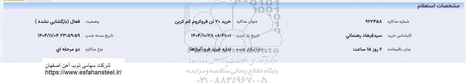 عنوان مذاکره: خرید 20 تن فروکروم کم کربن