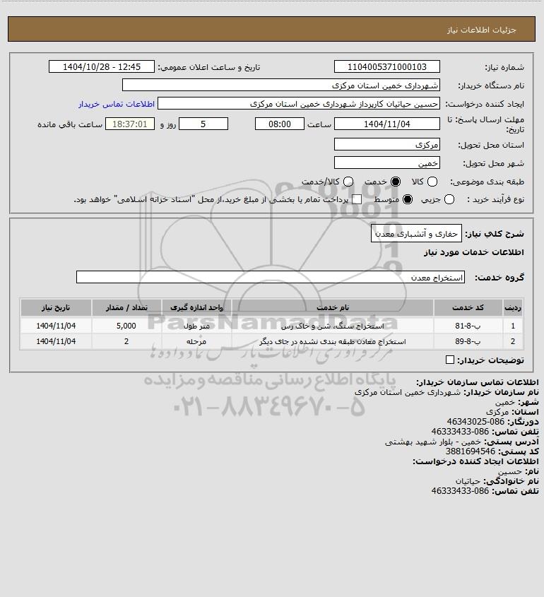 نام دستگاه خریدار:شهرداری خمین استان مرکزی