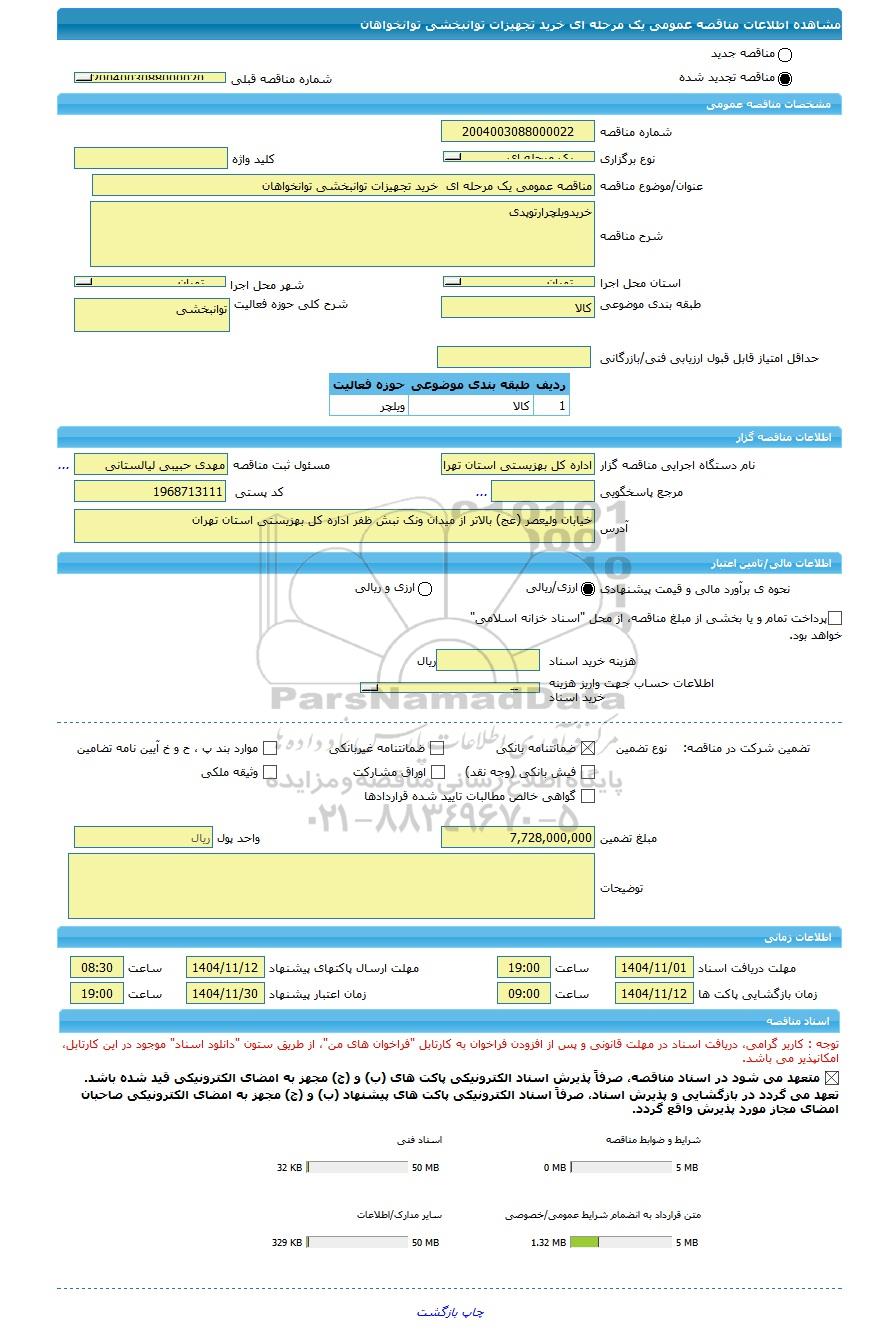 مناقصه مناقصه عمومی یک مرحله ای خرید تجهیزات توانبخشی توانخواهان, مناقصه، مناقصه عمومی یک مرحله ای خرید تجهیزات توانبخشی توانخواهان