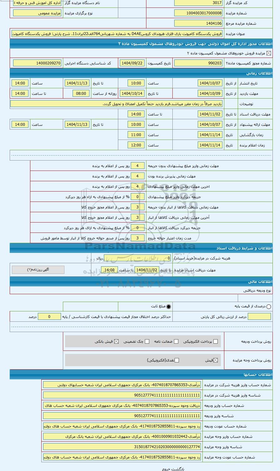 | شماره مزایده مرجع | 1404106 | |||