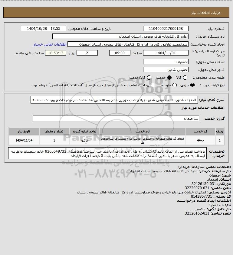 نام دستگاه خریدار:اداره کل کتابخانه های عمومی استان اصفهان