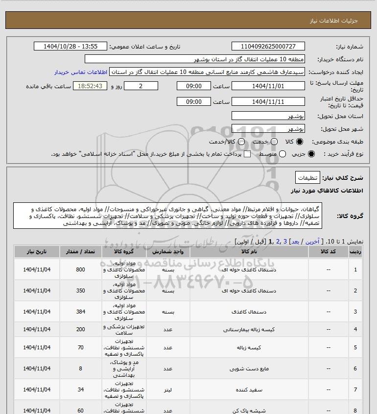 شماره نیاز: 1104092625000727