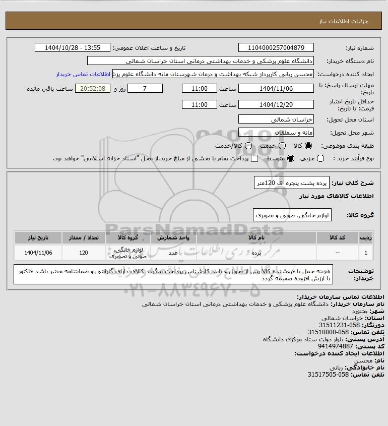نام دستگاه خریدار:دانشگاه علوم پزشکی و خدمات بهداشتی درمانی استان خراسان شمالی
