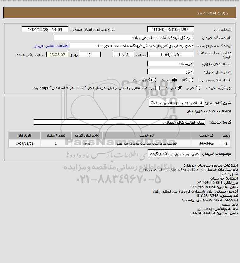 نام دستگاه خریدار:اداره کل فرودگاه های استان خوزستان