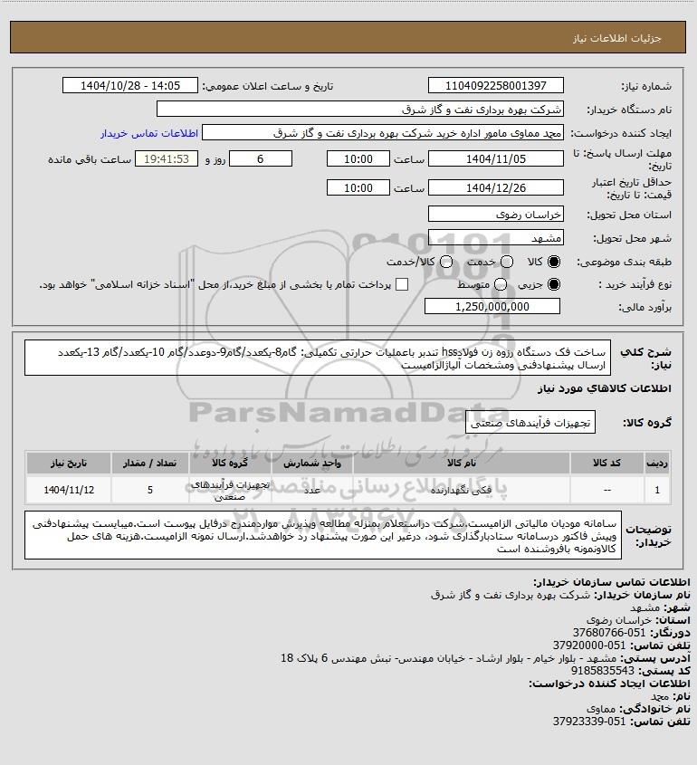 نام دستگاه خریدار:شرکت بهره برداری نفت و گاز شرق