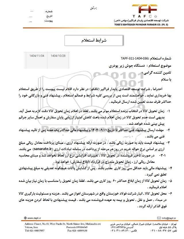 شماره استعلام: TAPF-311-1404-036