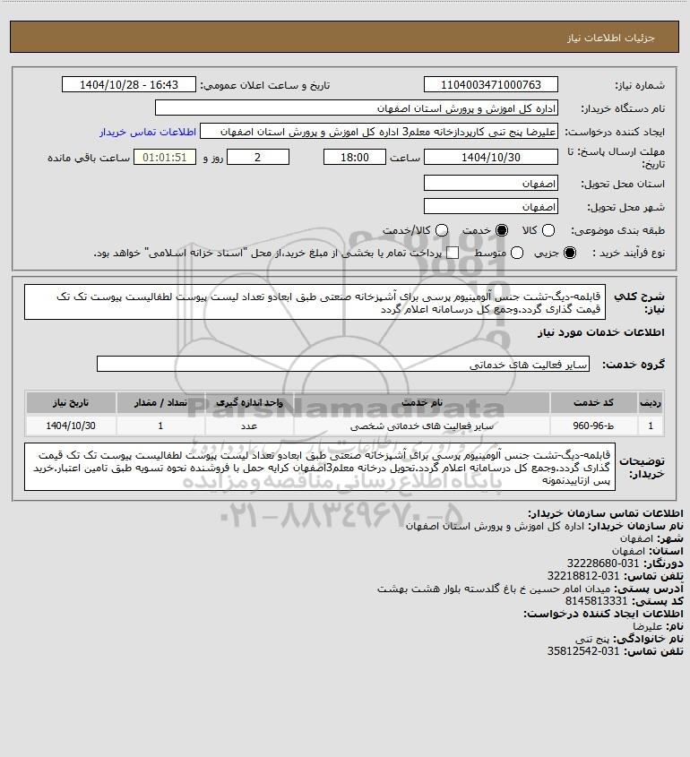 نام سازمان خریدار: اداره کل اموزش و پرورش استان اصفهان