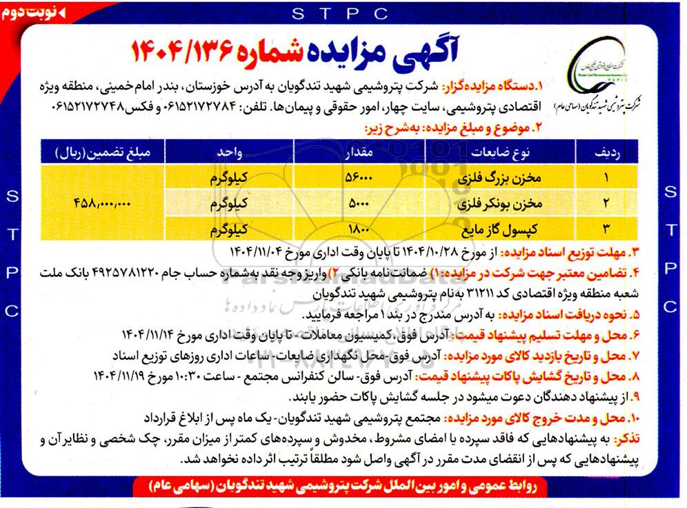آگهی مزایده شماره 1404/136 ؟ نوبت دوم