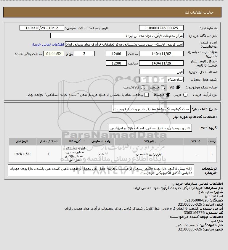 1 -- ابزار زمین شناسی عدد هنر و موسیقی، صنایع دستی، اسباب بازی و آموزشی 1 1404/11/09