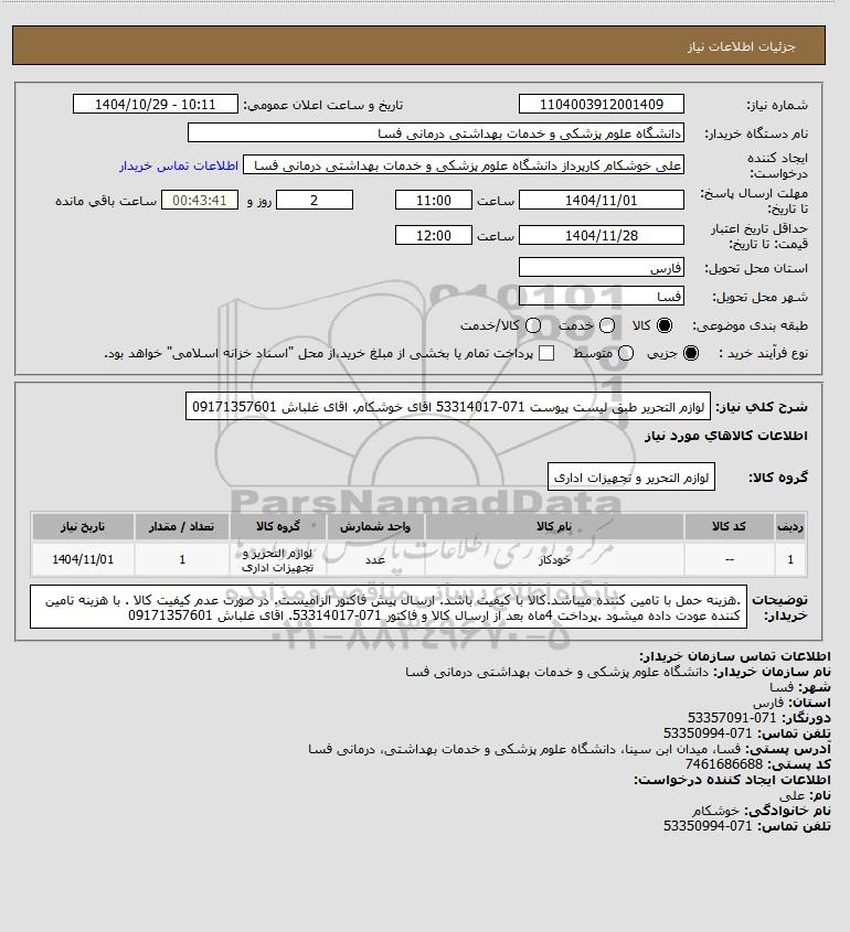 شرح کلی نیاز: لوازم التحریر طبق لیست پیوست