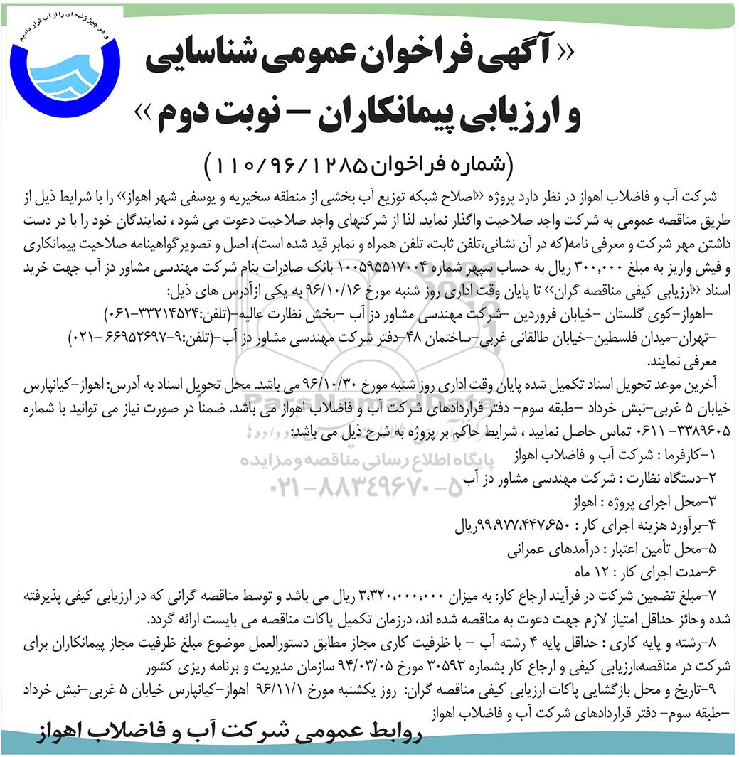 شماره فراخوان 110/96/1285