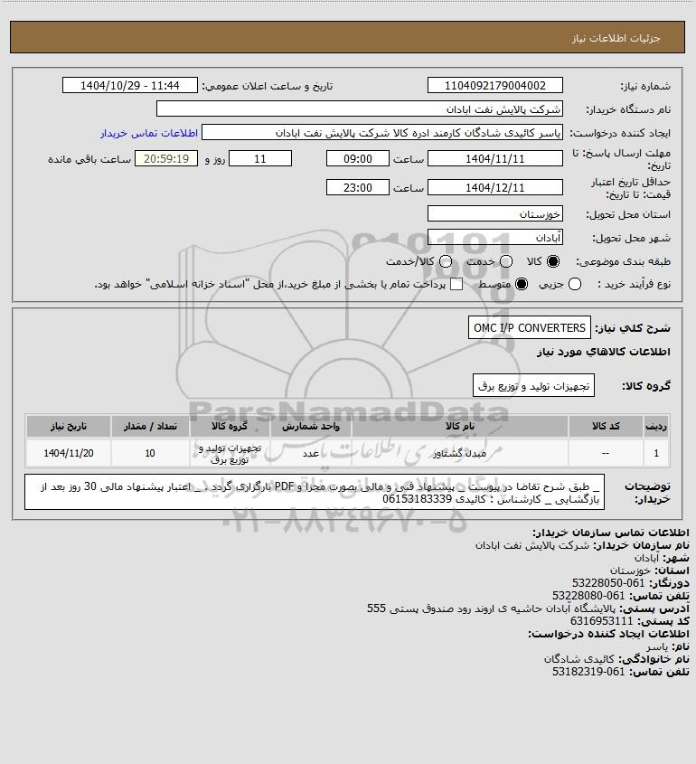 شرح کلی نیاز: OMC I/P CONVERTERS