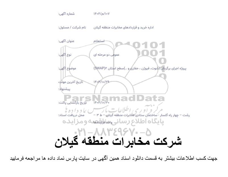 موضوع آگهی: پروژه اجرای برگردان (شوت، فیوژن، حفاری و...) سطح استان 2 (SWAP)