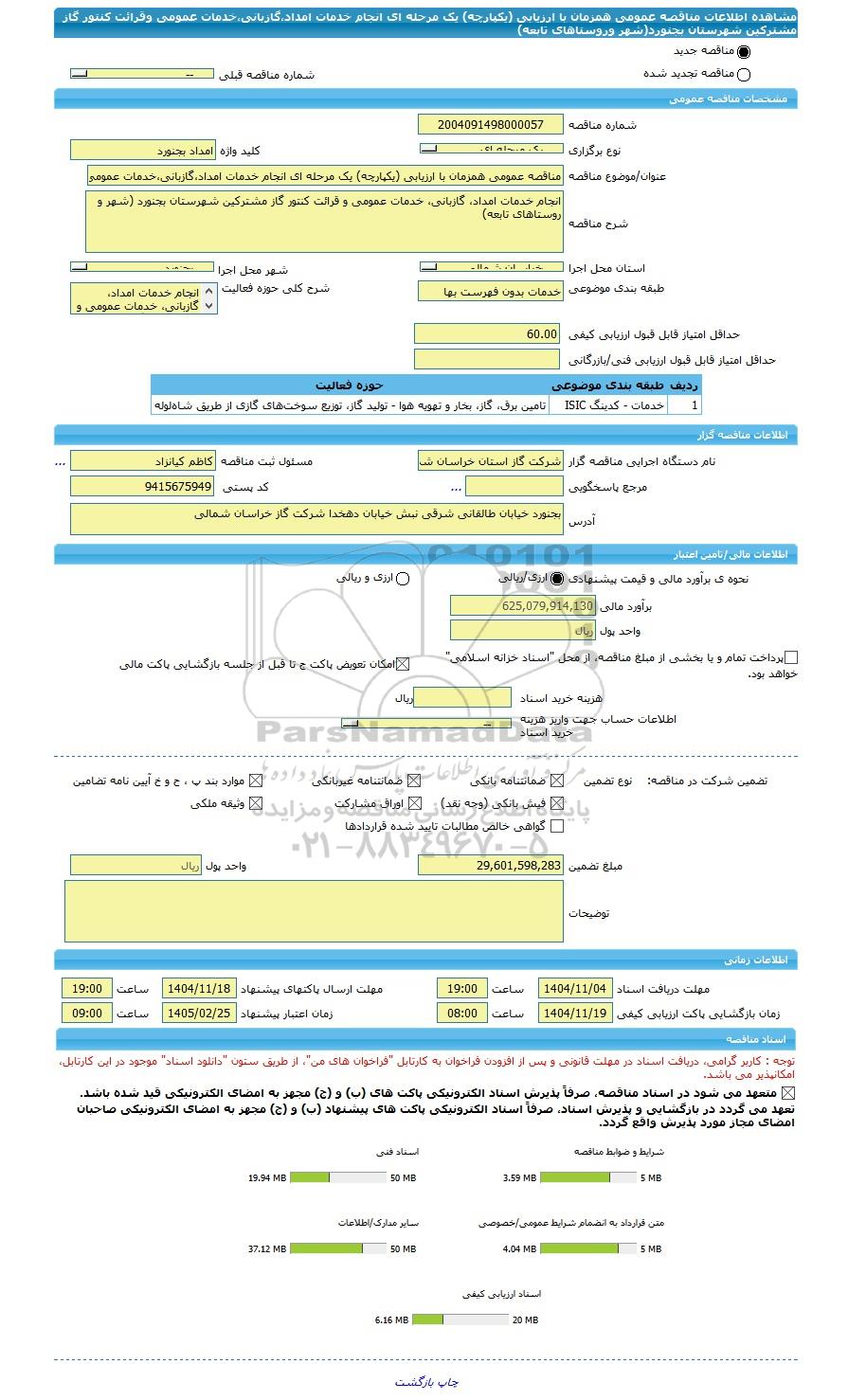 | شماره مناقصه | 2004091498000057 | ||||||||